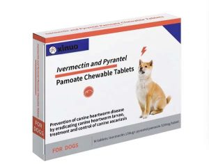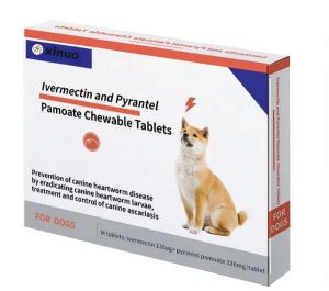 For dogs Ivermectin and Pyrantel Pamoate Chewable Tablets is chewable dewormer for dogs and whose main function is to deworming.It’s the broad spectrum canine antiparasitic drug.As a deworming drug for dogs, it is a broad-spectrum anti parasitic drug mainly used to treat intestinal roundworm, hookworm and whipworm infections, This product has quick effect on pet deworming and is not harmful to pets.