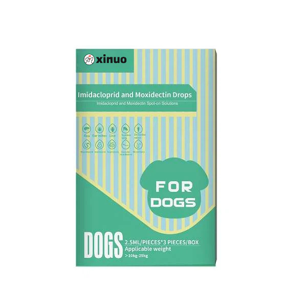 Imidacloprid and Moxidectin Drops for dogs is a kind of pet deworming drops to help deworming dogs. They only require a drop on the back of the neck to kill parasites in and out of the body, which is safer and does not irritate the stomach or vomit. After the first dose, imidacloprid was rapidly distributed to the body surface of the dog on the same day and remained on the body surface throughout the dosing period. It’s the best flea and heartworm prevention for dogs,liquid heartworm medicine for dogs,heartworm and tick medicine for dogs.
