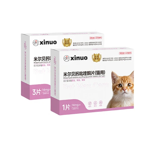 Milbemycin Oxime and Praziquantel Tablets for cats are a kind of pet deworming  tabletsThe main ingredients are MilbemycinOxime and Praziquantel, which can control a variety of common parasites, such as heartworm, Ascaris lumbricoides, Leptospira, etc., to provide good care for the health of dogs.It is the effective deworming medicine for cats.They can kill a variety of parasites, such as ascaris lumbricus, tapeworms, mites, fleas, etc., and help pets to improve wasting and body organ damage caused by parasites.Scientific production, please rest assured to buy