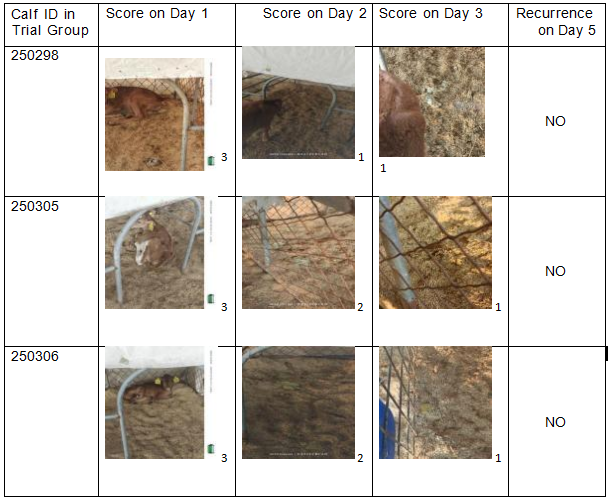 Trial Design: Nine naturally affected diarrheic calves (Holstein breed, aged 15–30 days) were selected. Calf anti-diarrhea was administered orally twice a day, 40g each time (50g for the first use), for 3 consecutive days. The cure rate of diarrhea, time to fecal normalization, and recurrence rate of the calves were observed.
