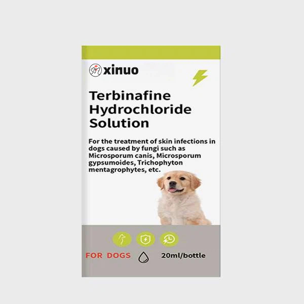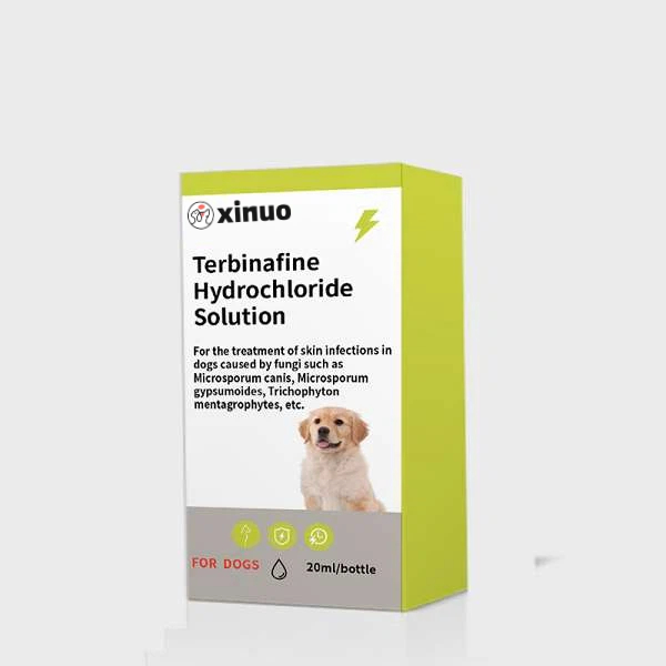Terbinafine Hydrochloride Solution for dogs is an allylamine broad-spectrum antifungal drug. It can specifically interfere with the early biosynthesis of sterol and selectively inhibit fungal squalene epoxidase, so that the epoxidation reaction of squalene in the process of fungal cell membrane formation is blocked, thereby achieving the effect of killing or inhibiting fungi.It’s the medicine for dog yeast infection,antibiotic ointment for dogs skin infection and Natural Antibiotics for Dogs.