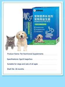 • Product Information: Probiotics for pets with compound addition of Bacillus subtilis, Bacillus licheniformis, Enterococcus faecalis and glucose oxidase. Bacillus subtilis can regulate intestinal flora, form intestinal hypoxia environment, promote the growth of beneficial anaerobic bacteria, and produce organic acids such as lactic acid. Bacillus licheniformis can rapidly colonize the intestinal tract, rapidly consume oxygen, and form an anaerobic environment, which is conducive to the physiological activities of other probiotics in the intestinal tract, promote gastrointestinal function, and contribute to intestinal digestion and absorption.