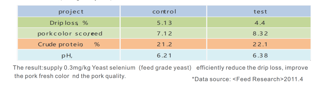 Different selenium source’s affections on the quality of Finishing pigs. APPLICATION EFFECT The experiment is planned on random, choose 48 D×C×D pigs weighs 60±2kg all in same genetic background and good physical condition, separated into two parts, each parts contains 4 groups of 6 pigs, the control group daily supply 0.3ppm sodium selenite experimental group supply